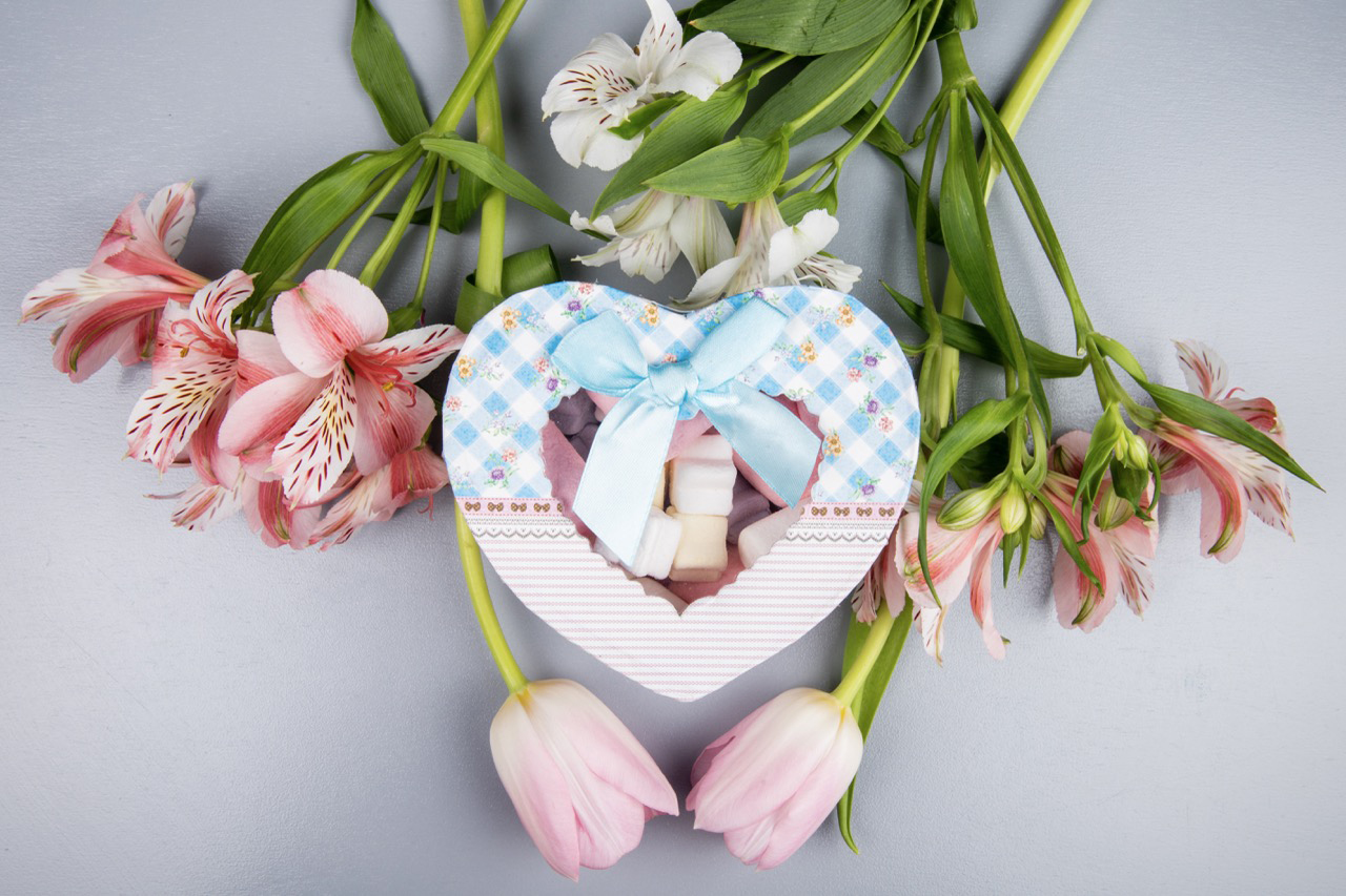 Kalp kutulu çiçekler: Mesajı sadece çiçekle değil, ambalajıyla da pekiştirir.