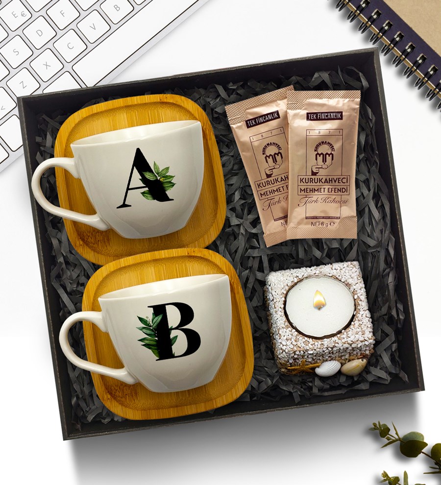 Hediye Setimizin İçerisinde, 1. Sınıf Porselenden üretilmiş Kişiye Özel Baş harfli 2 Adet Gold Detaylı Beyaz Fincan ve dekoratif mum yer almaktadır. 2 Adet 6gr. Mehmet Efendi Türk Kahvesi Setin Tamamlayıcısıdır. Setimizi Beğenilerinize sunuyoruz.