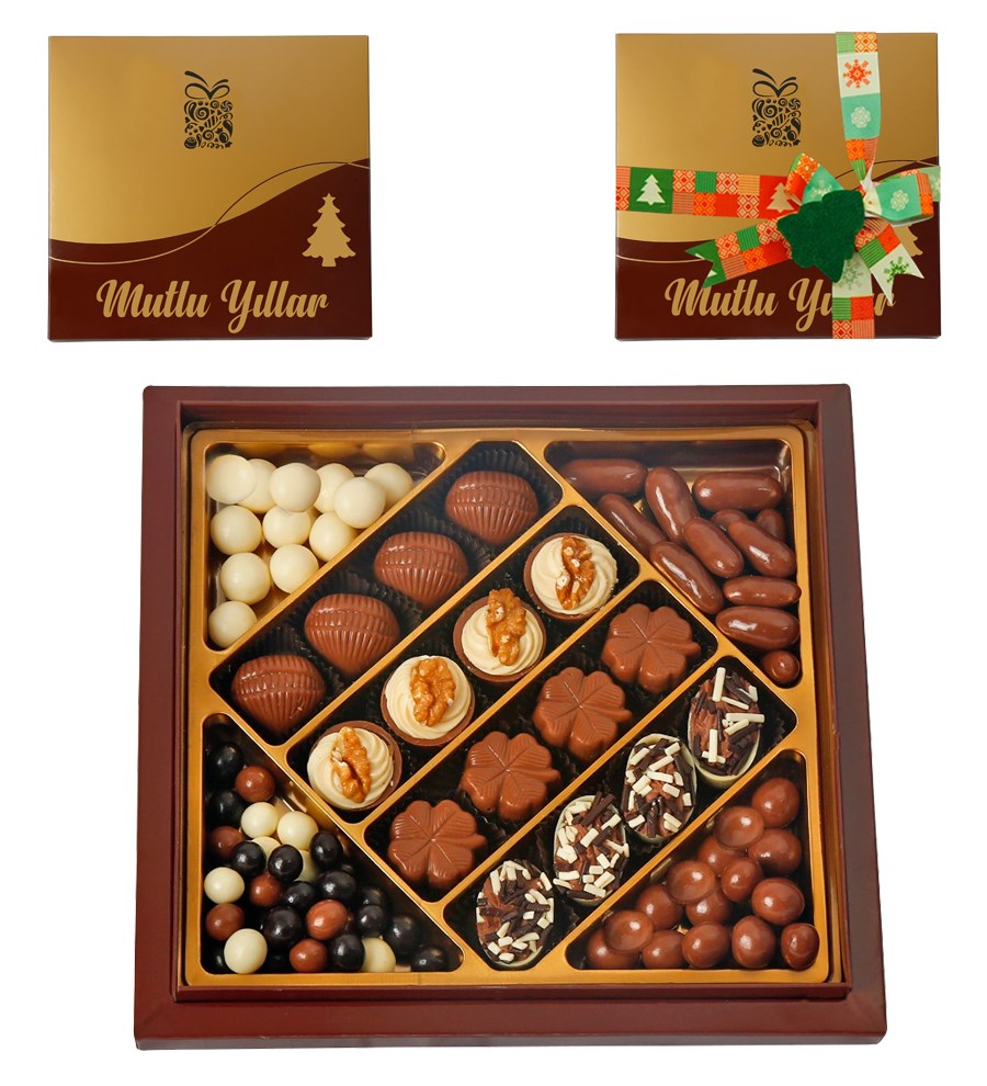 Kutu Ölçüleri: 23*22*4 Trüf Çikolata:16 adet Draje: 180 gram net
