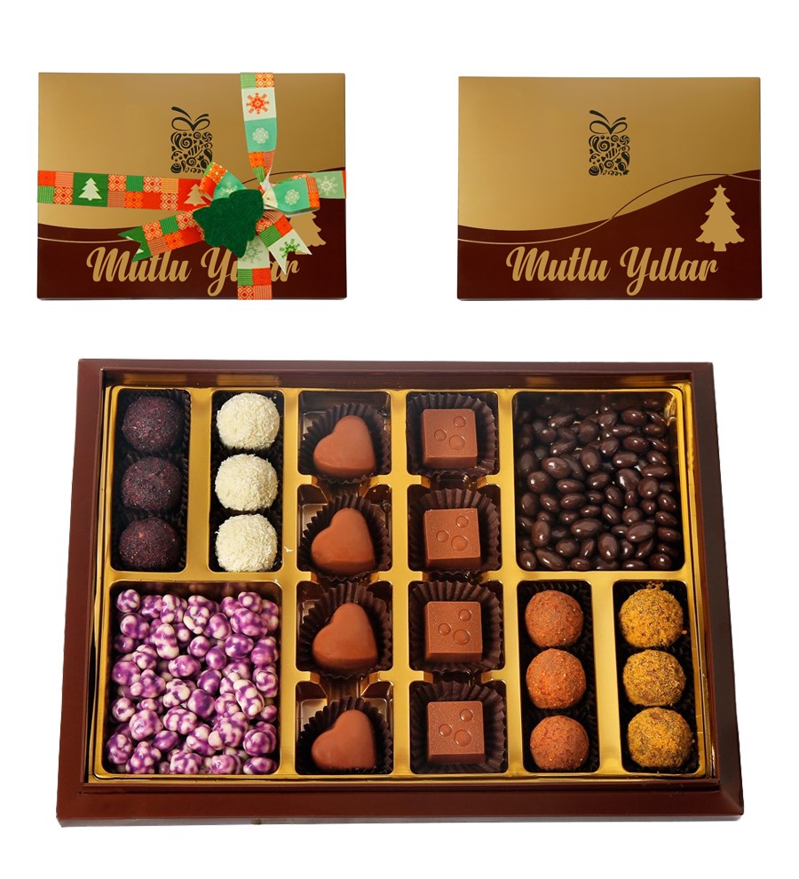 Kutu Ölçüleri: 23*33*4 Trüf Çikolata: 12 Adet Spesiyal Çikolata: 8 Adet Draje: 200 gram net